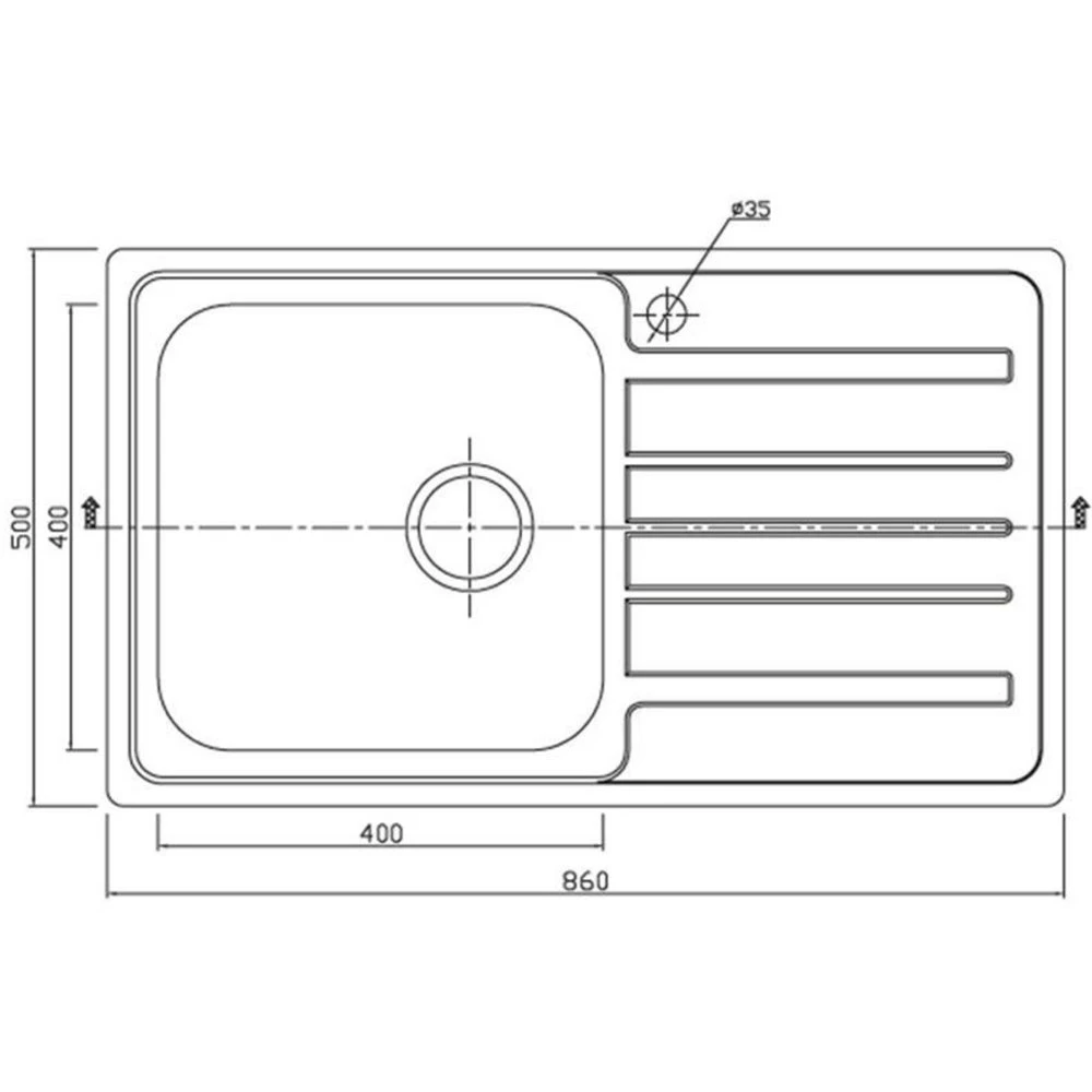 - Διαστάσεις Νεροχύτη: 860 x 500 mm