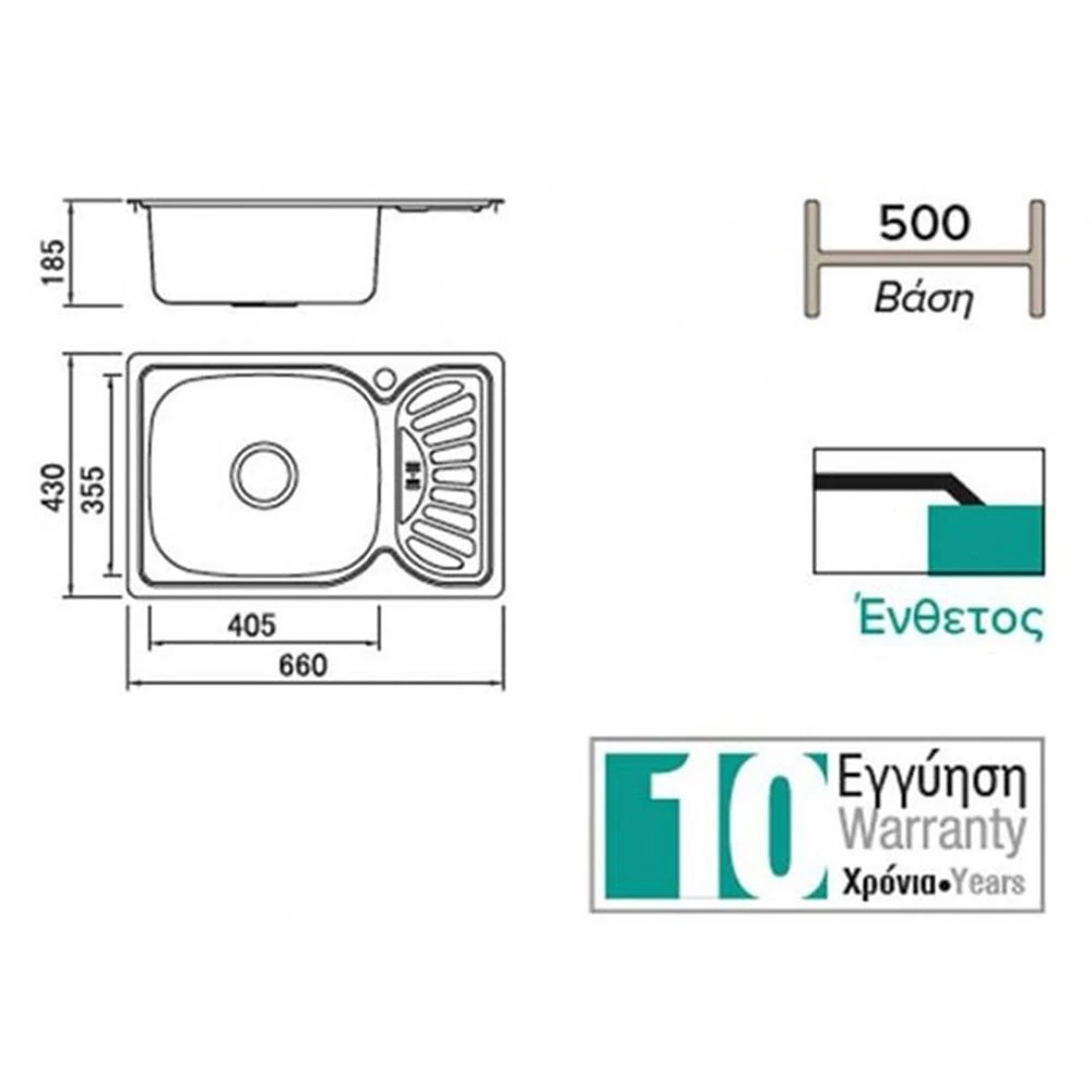 - Διαστάσεις Νεροχύτη: 660 x 430 mm