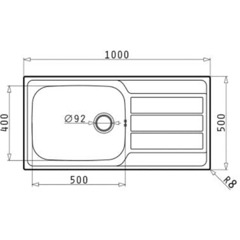 - Διαστάσεις νεροχύτη: 1000 x 500mm