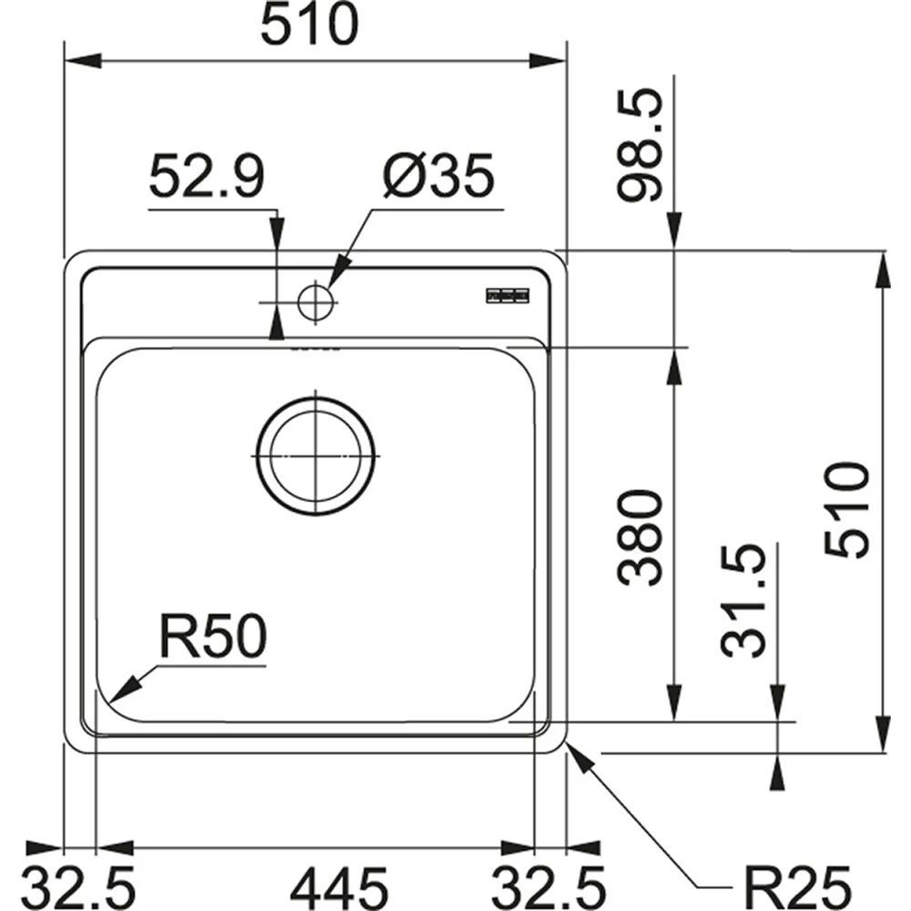 - Εξωτερική διάσταση 510x510mm
