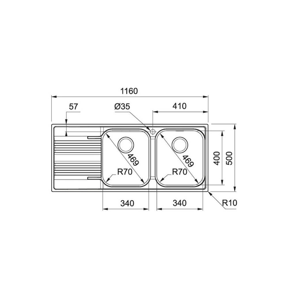 Νεροχύτης ανοξείδωτος FRANKE SMART SRX 621 116×50 Ραβδώσεις Δεξιά 3011750301