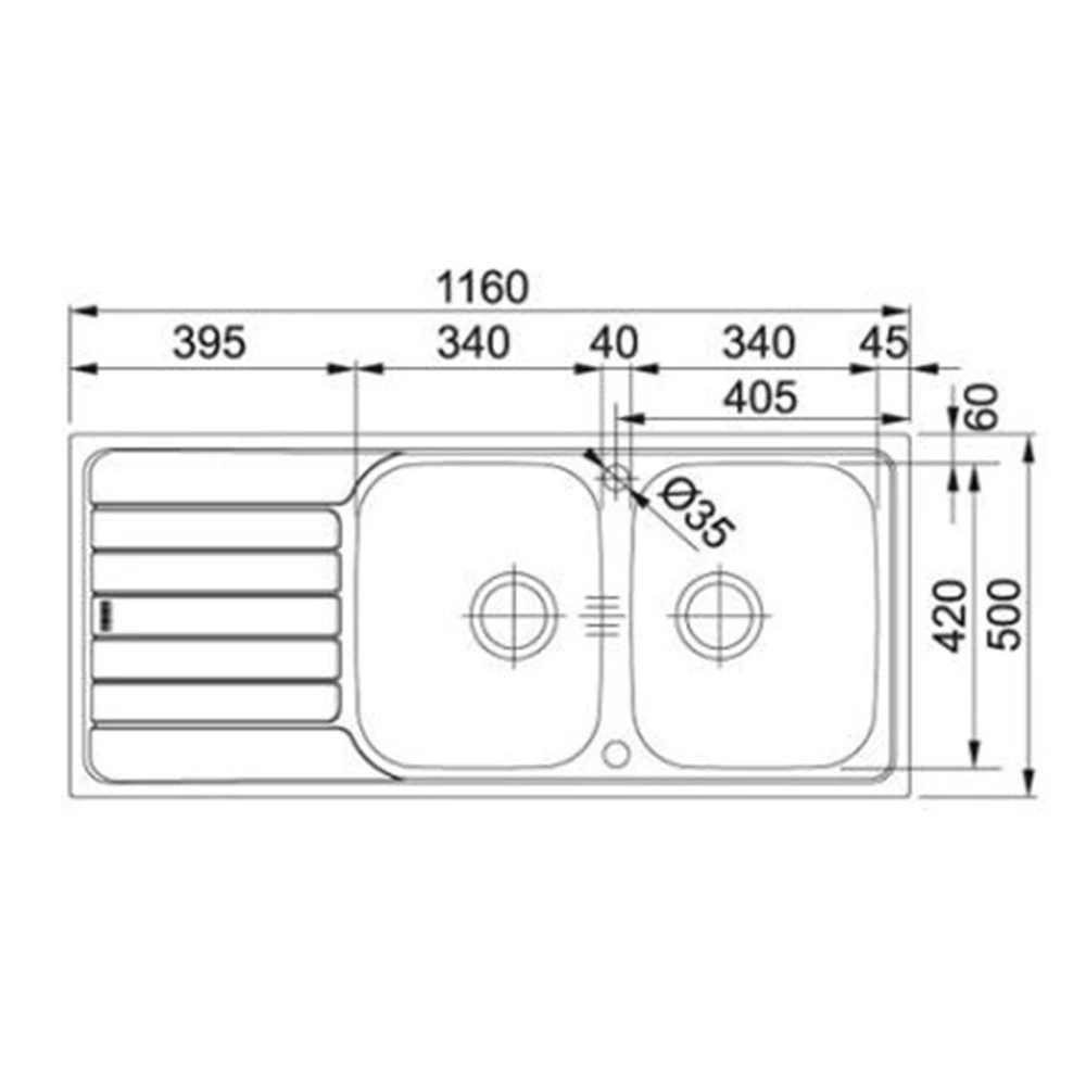 Νεροχύτης ανοξείδωτος FRANKE SPARK SKX 621 λείος 116×50 αντιστρεφόμενος