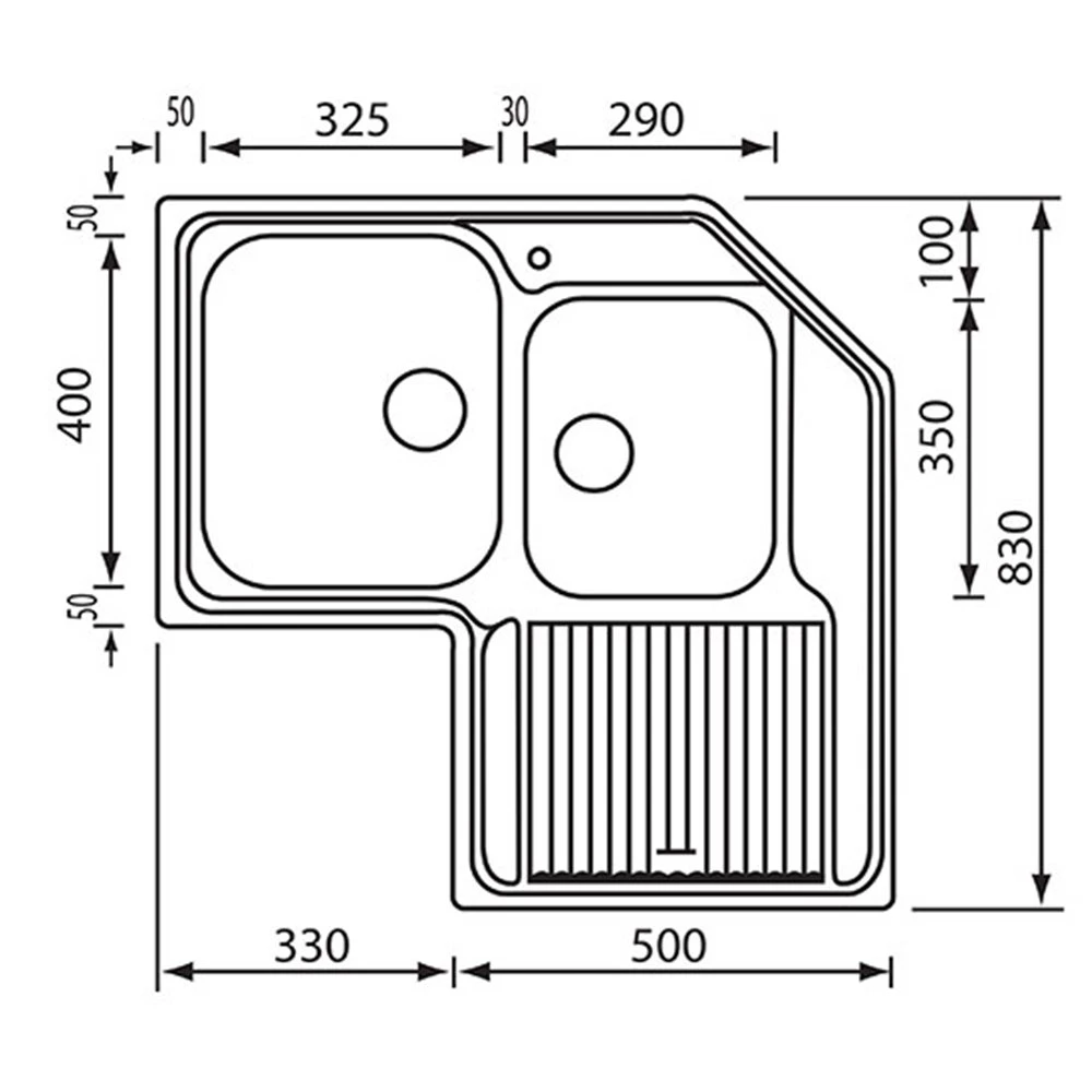 Νεροχύτης ανοξείδωτος γωνιακός σατινέ SANITEC ZENITH 11248 83×83 Ραβδώσεις Δεξιά