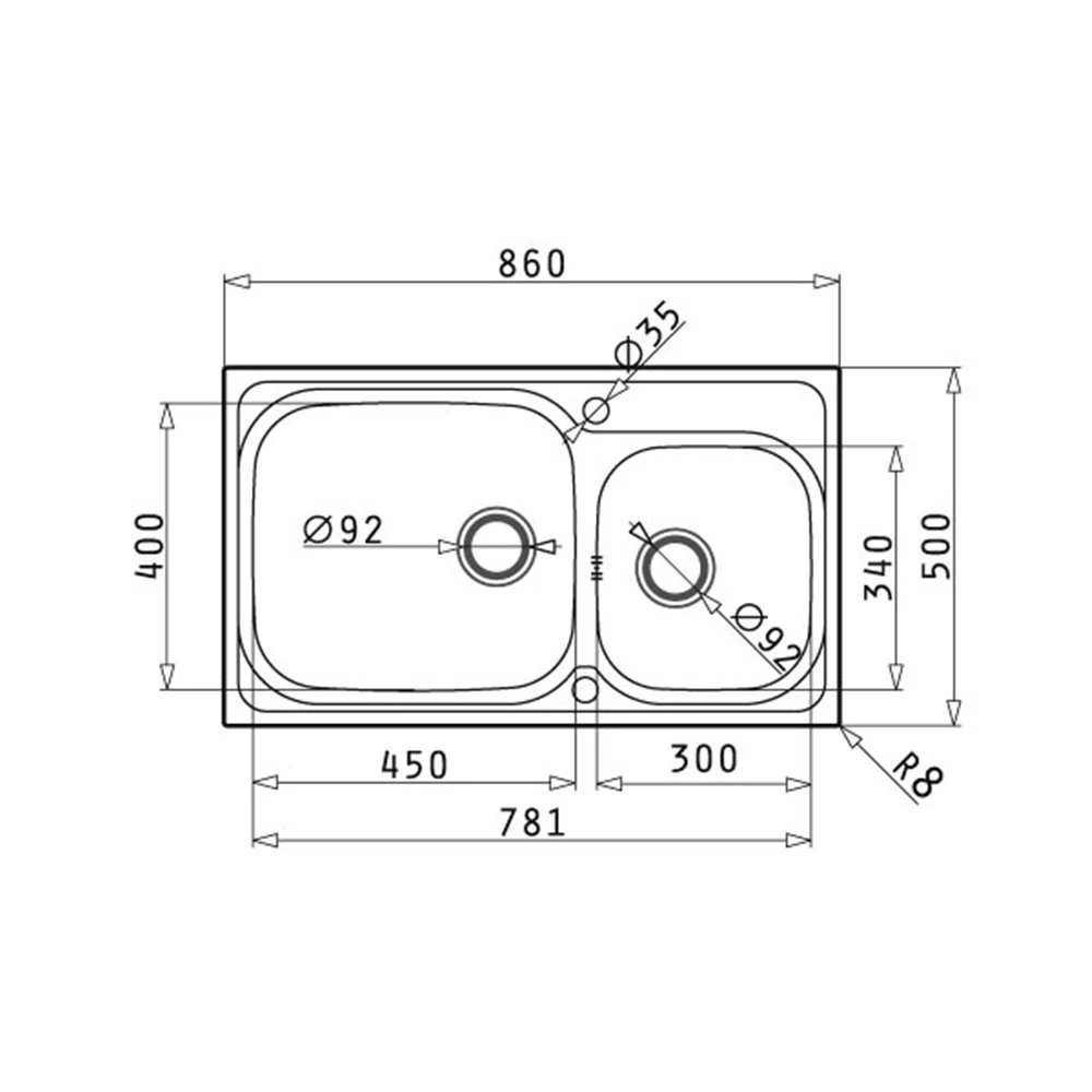 - Διαστάσεις Νεροχύτη: 860 x 500mm