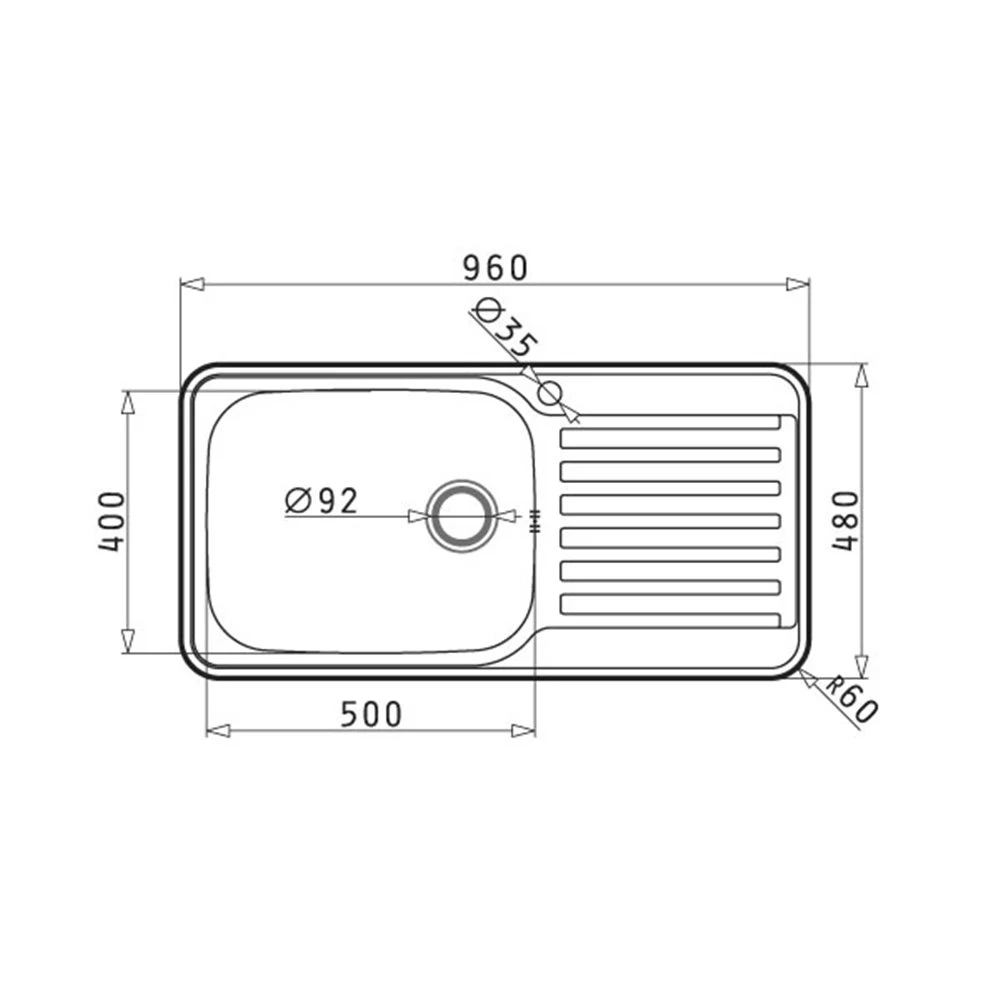 - Διαστάσεις Νεροχύτη: 960 x 480mm