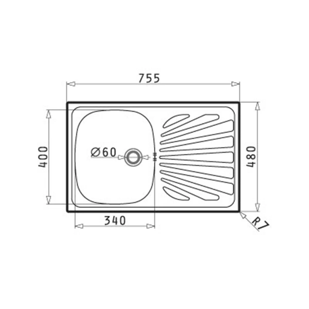 - Διαστάσεις νεροχύτη: 755 x 480mm