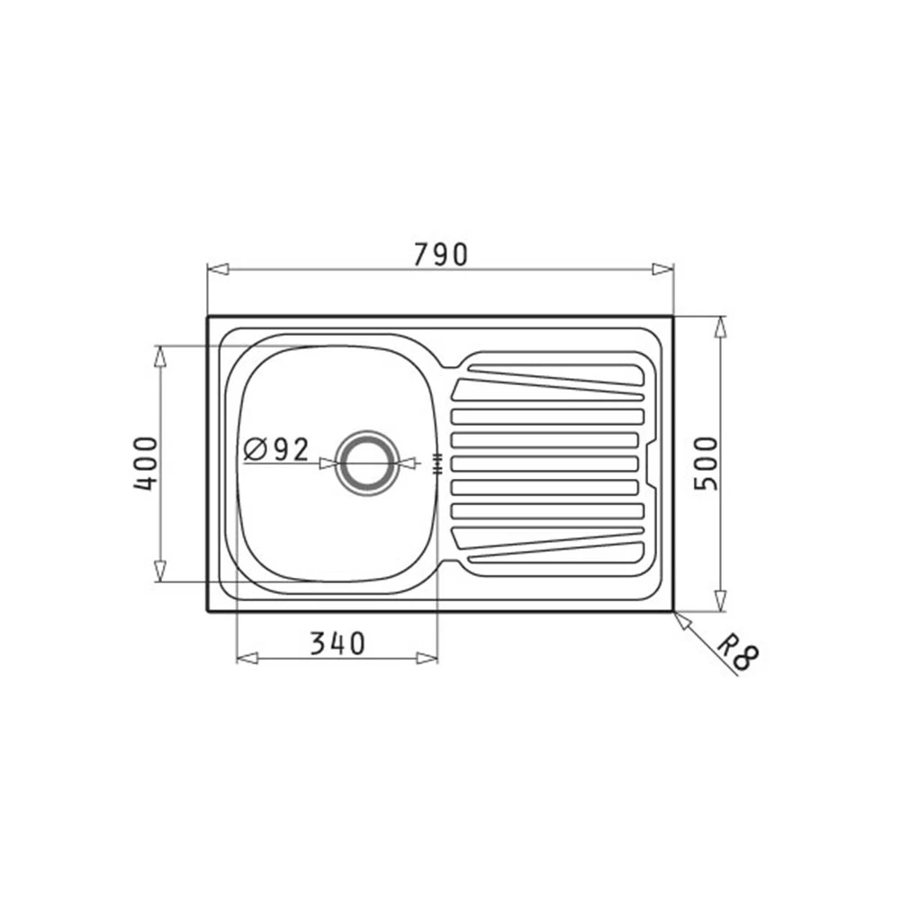 - Διαστάσεις νεροχύτη: 790 x 500mm