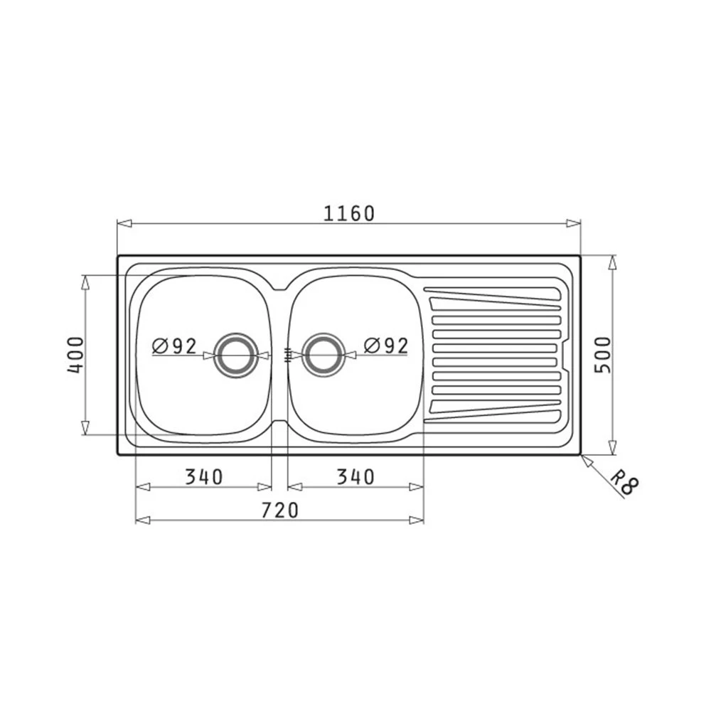 - Διαστάσεις Νεροχύτη: 1160 x 500mm