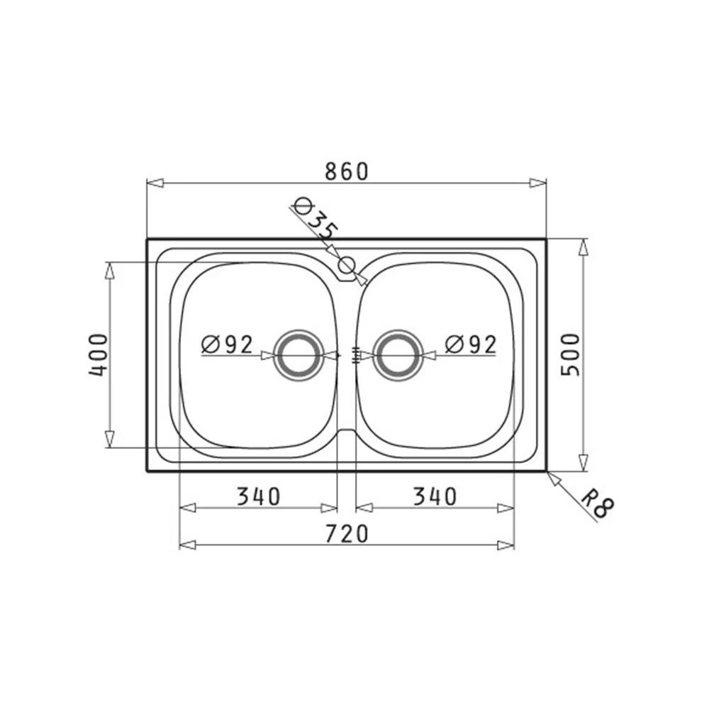 - Διαστάσεις νεροχύτη: 860 x 500mm