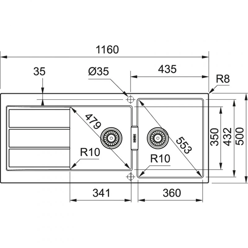 - Διάσταση γούρνας 36×43,2×20 cm / 34,1×43,2×20 cm